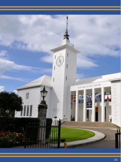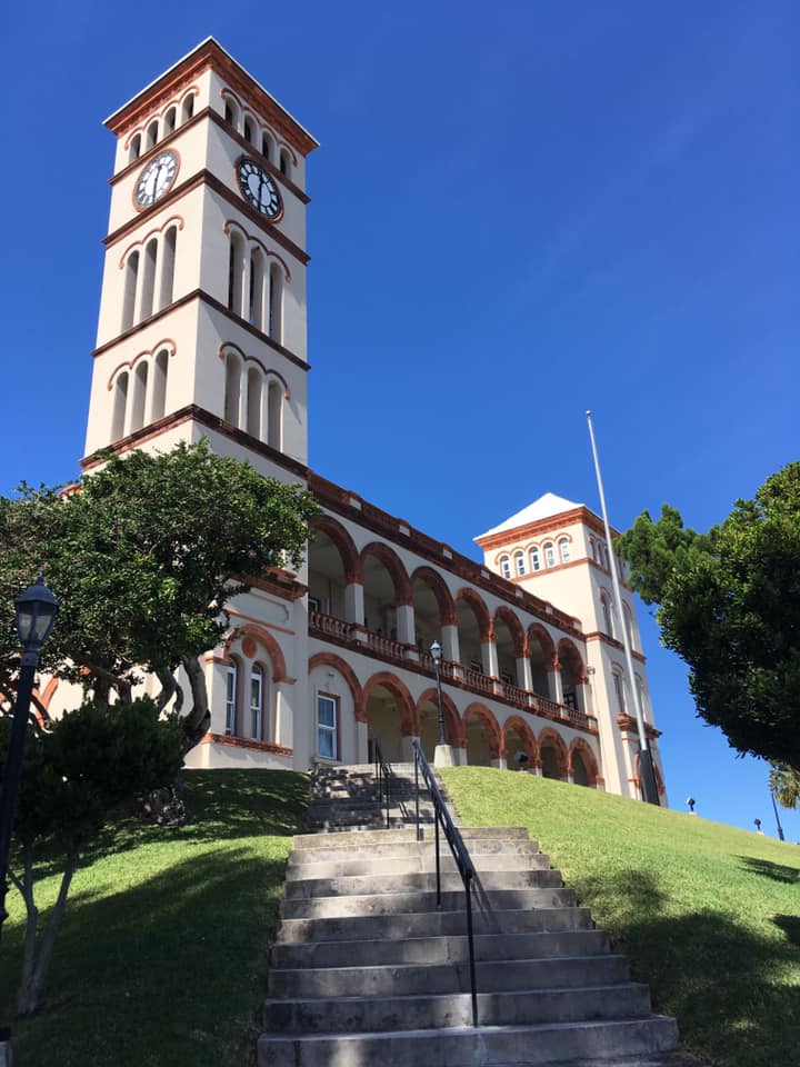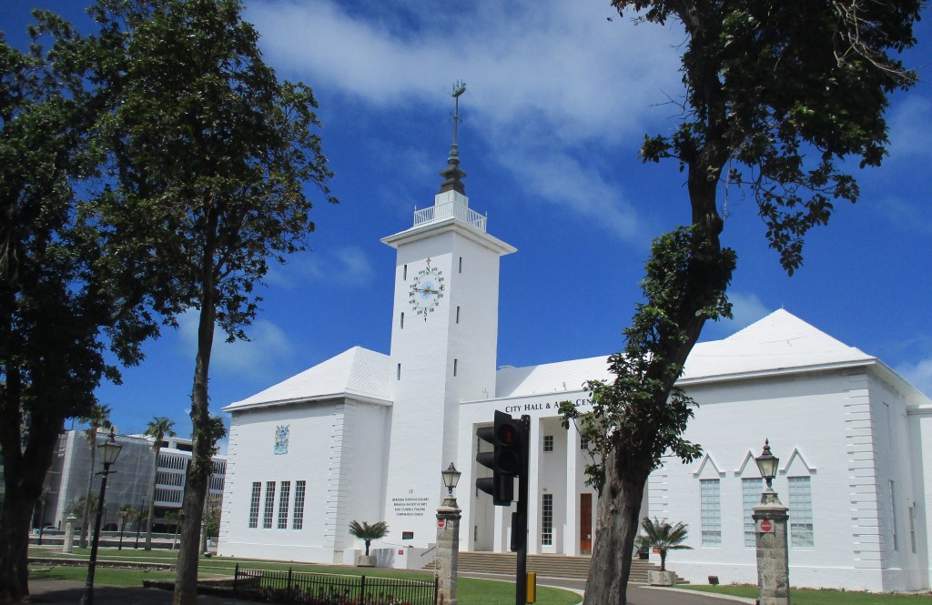 The City Hall of Hamilton was completed in 1960 the (second) designed by Wilfred Onions was inspired by the traditional Bermuda Cottage architectural style building though its central tower demonstrates a Scandinavian influence.[46]